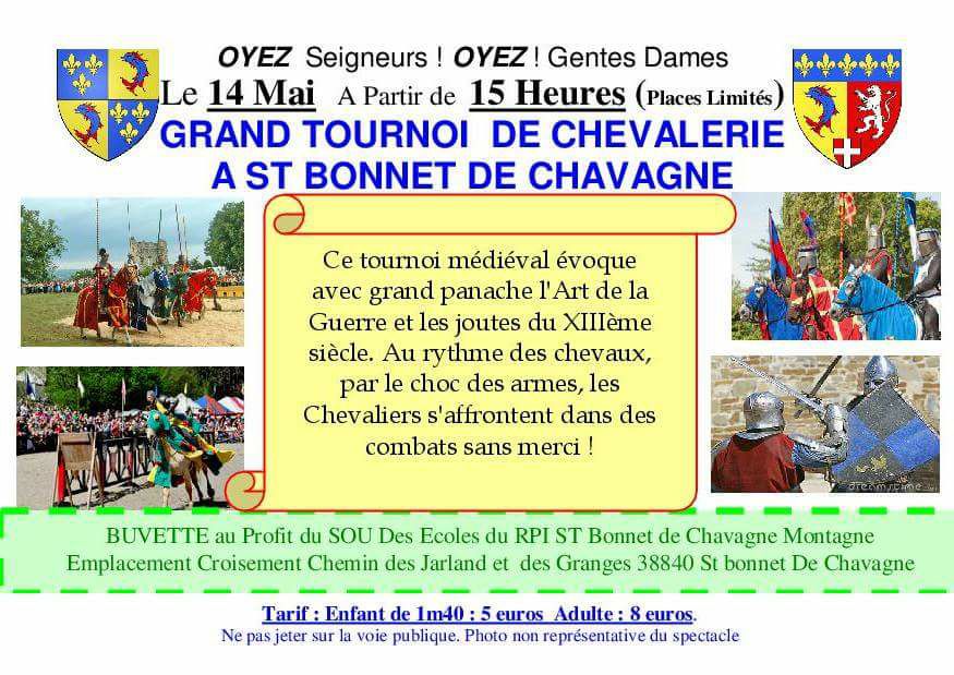 - Grand Tournoi de Chevalerie le 14 mai 2017 à St Bonnet de Chavagne (Isère)
